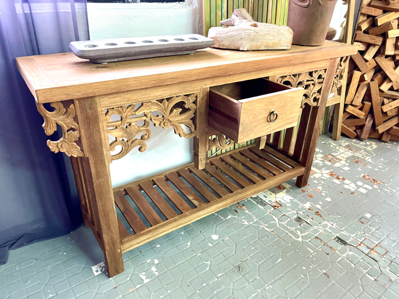 全新品 手工雕刻 柚木玄關桌 1個抽屜 L140 W40 H80 cm -Console w/Carving, 1 Drawers