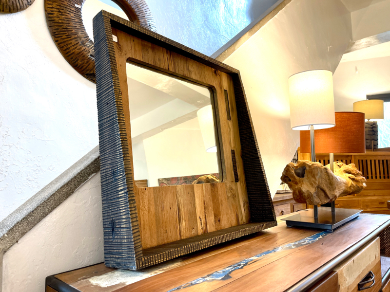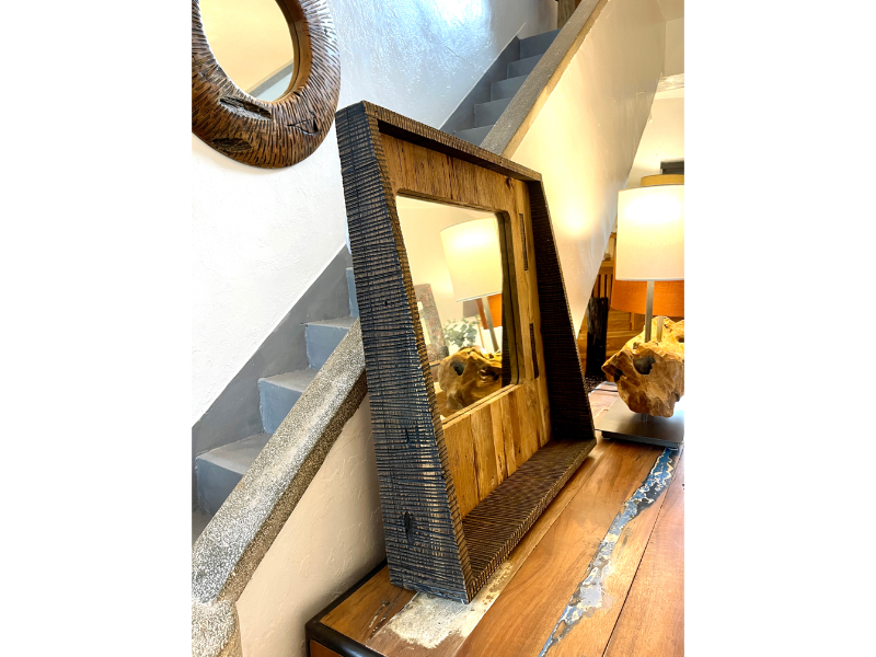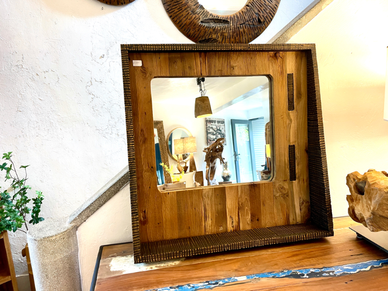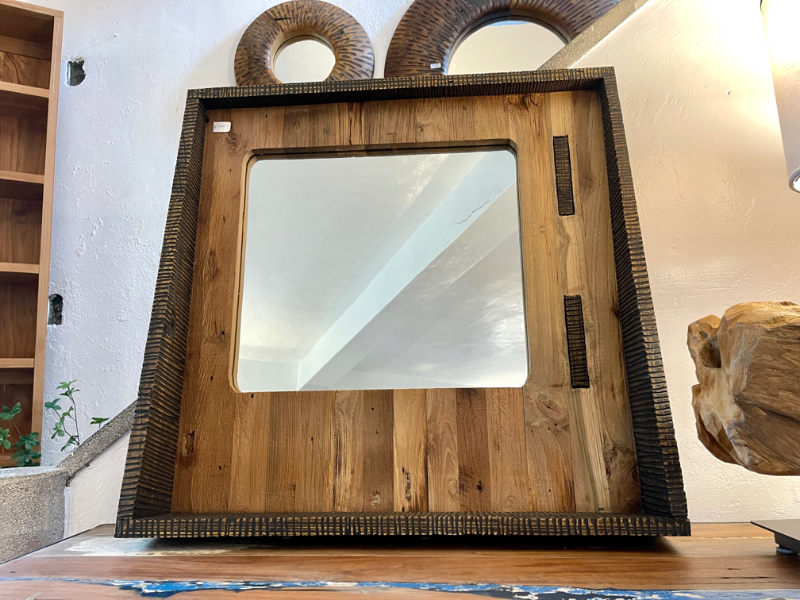 老柚木鏡子 鏡邊可掛東西(木頭可伸縮)-Oscar Mirror S