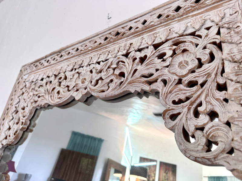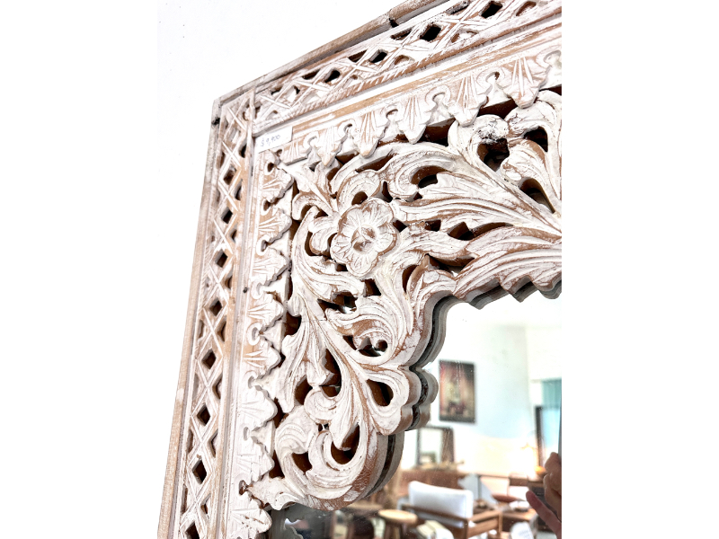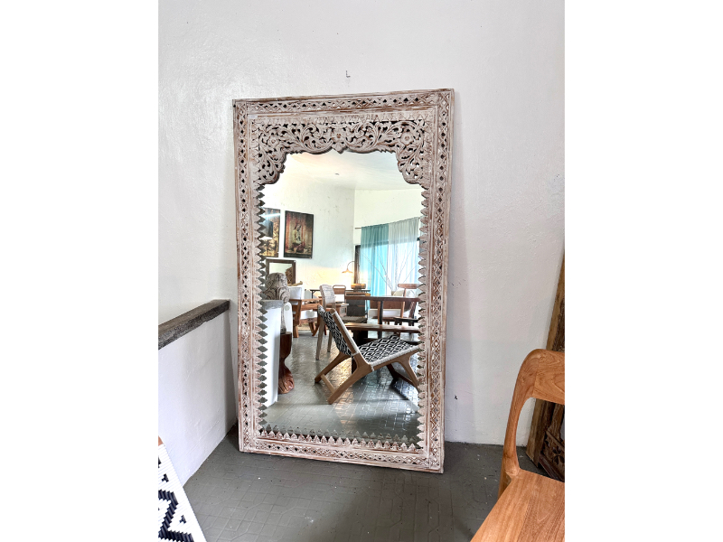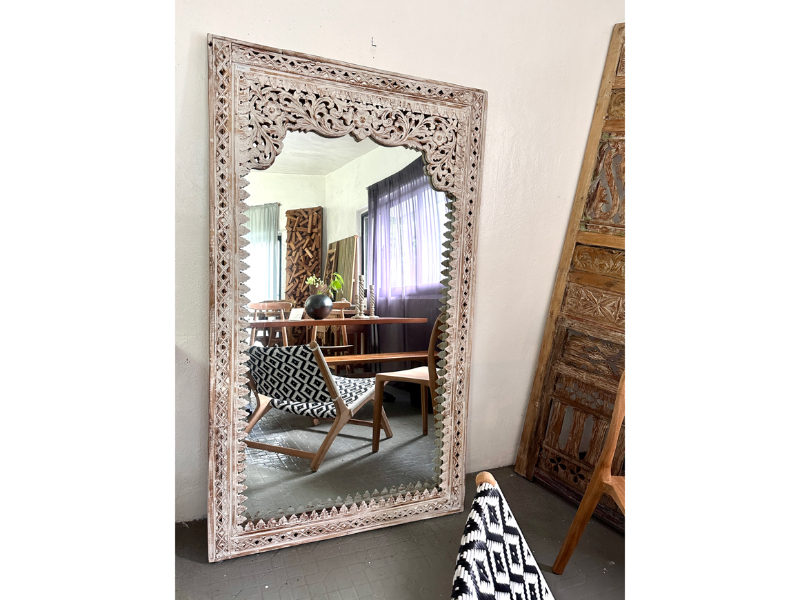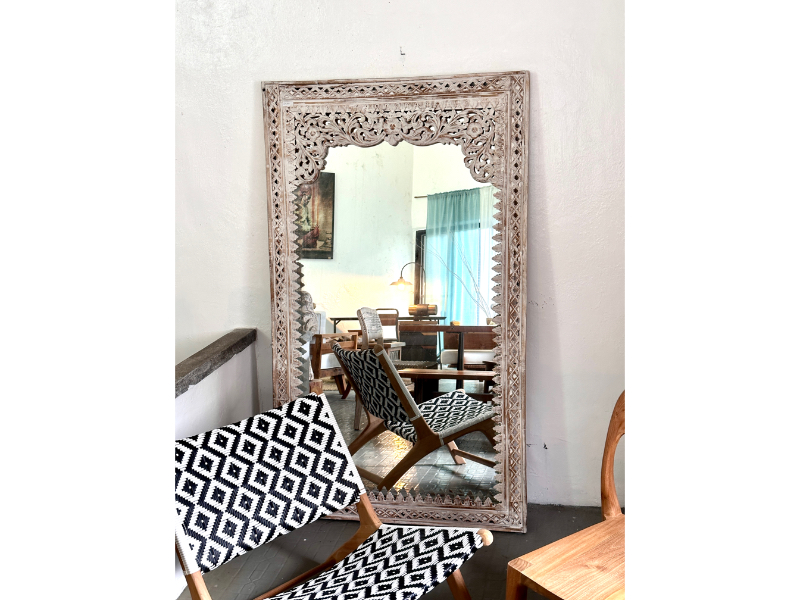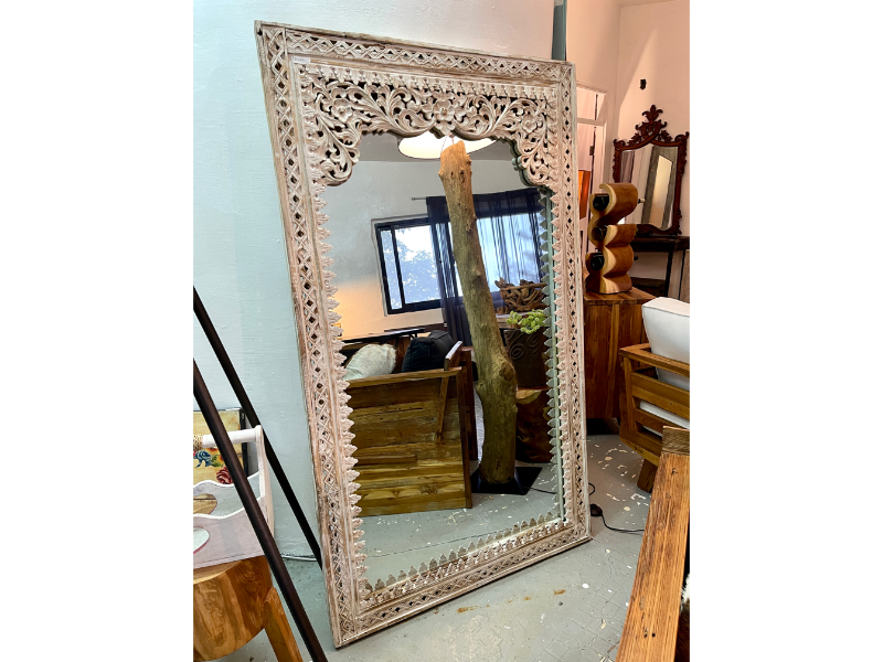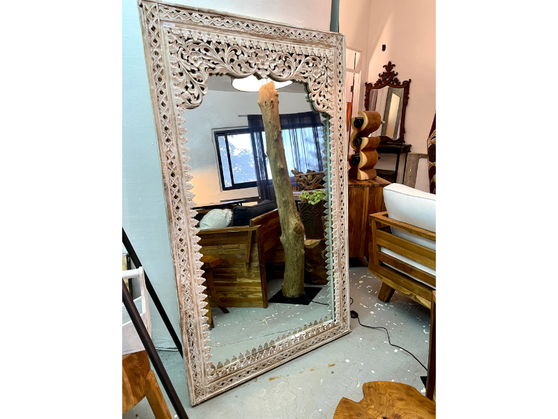 柚木雕花鏡/立鏡 白色- Indah Mirror