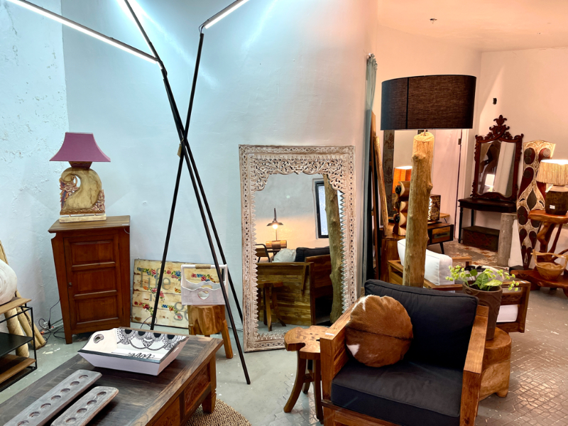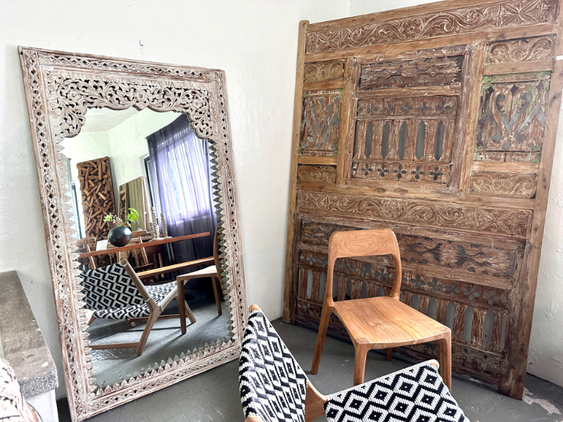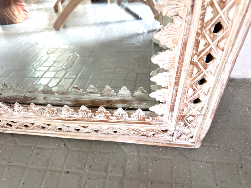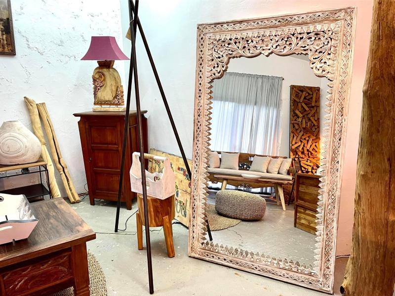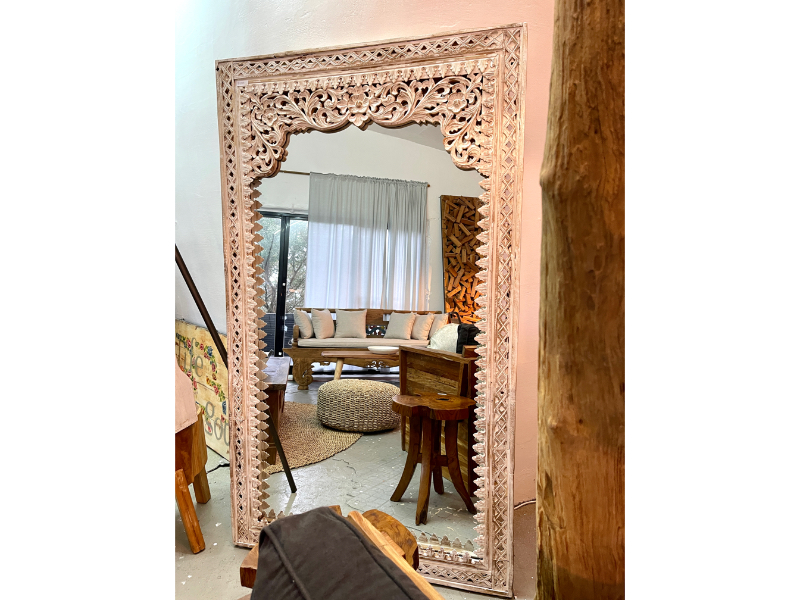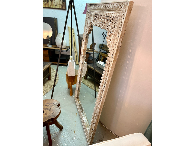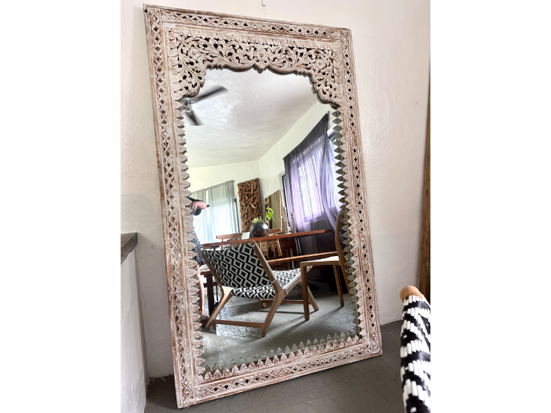 柚木雕花鏡/立鏡 白色- Indah Mirror