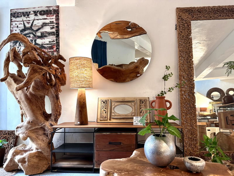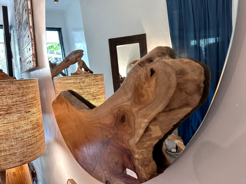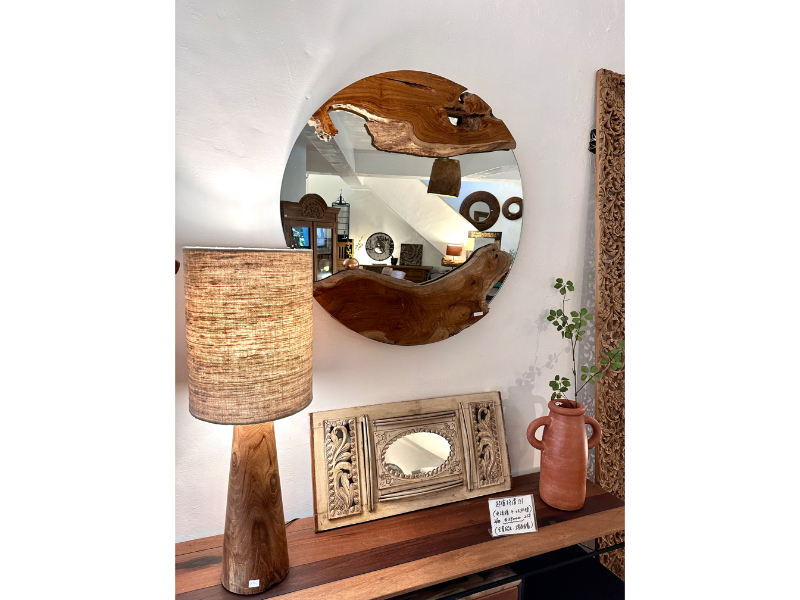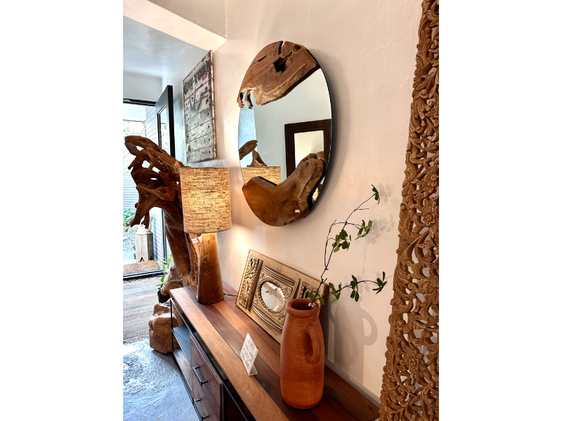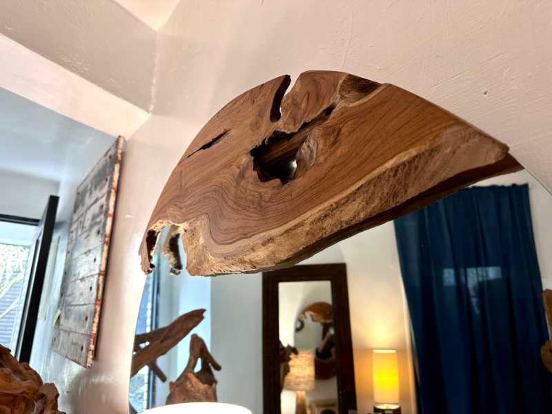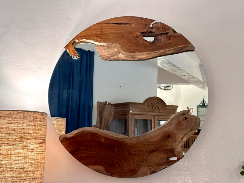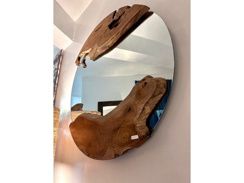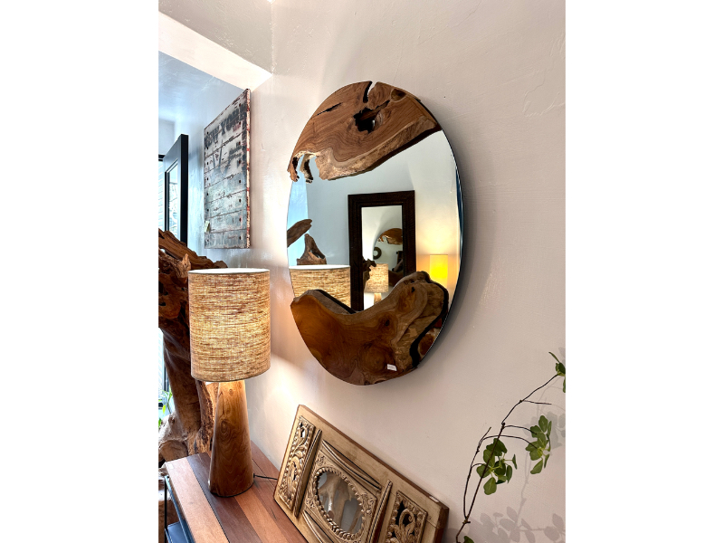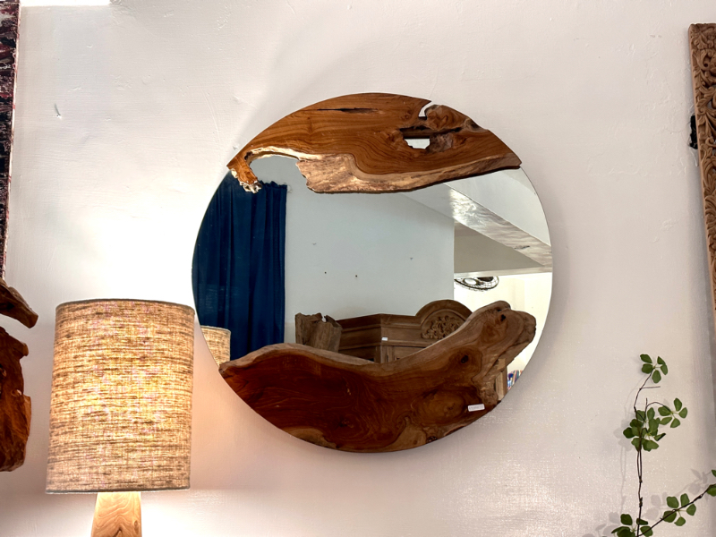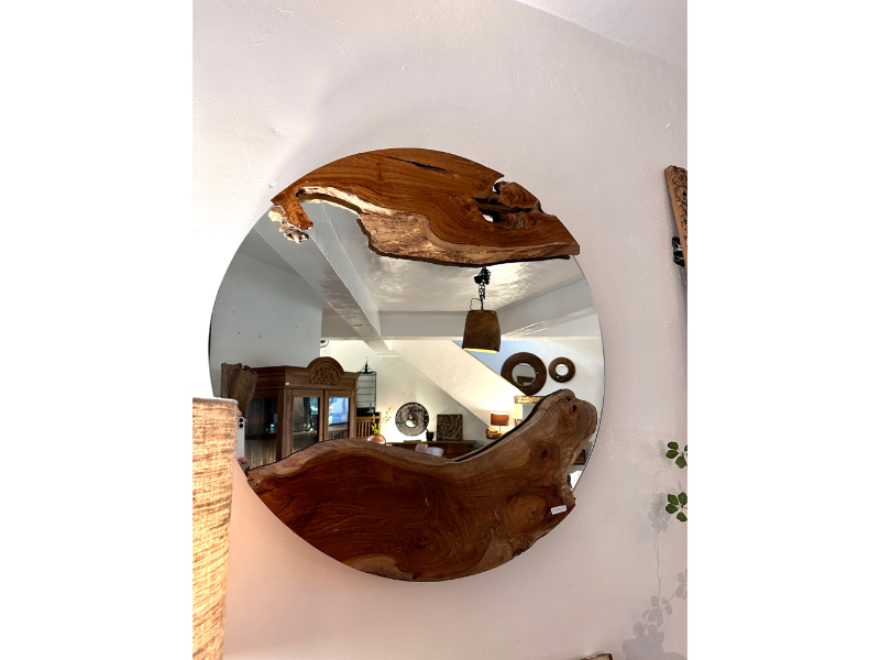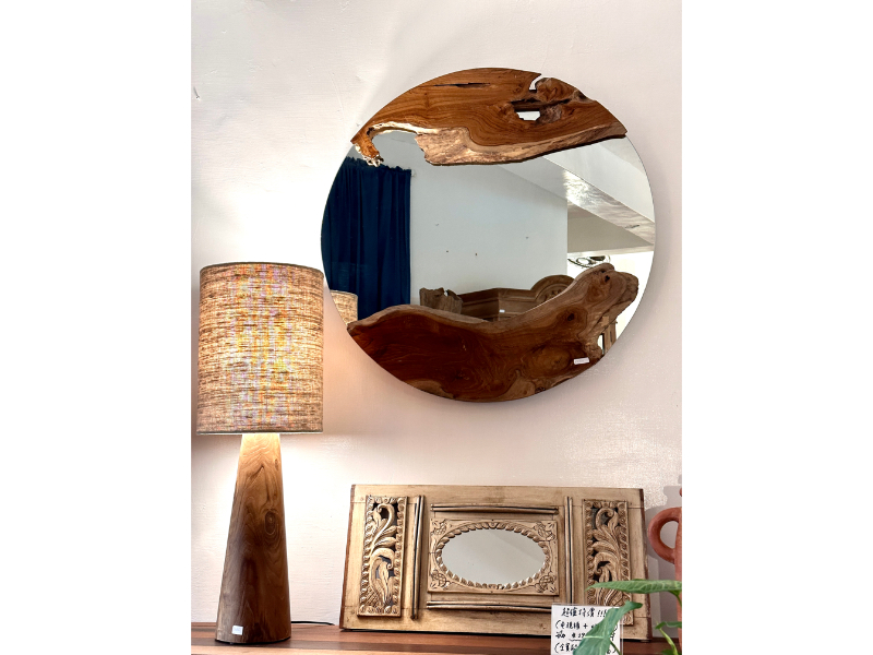 柚木圓鏡 上下各一個自然柚木塊 -Natural Round Mirror