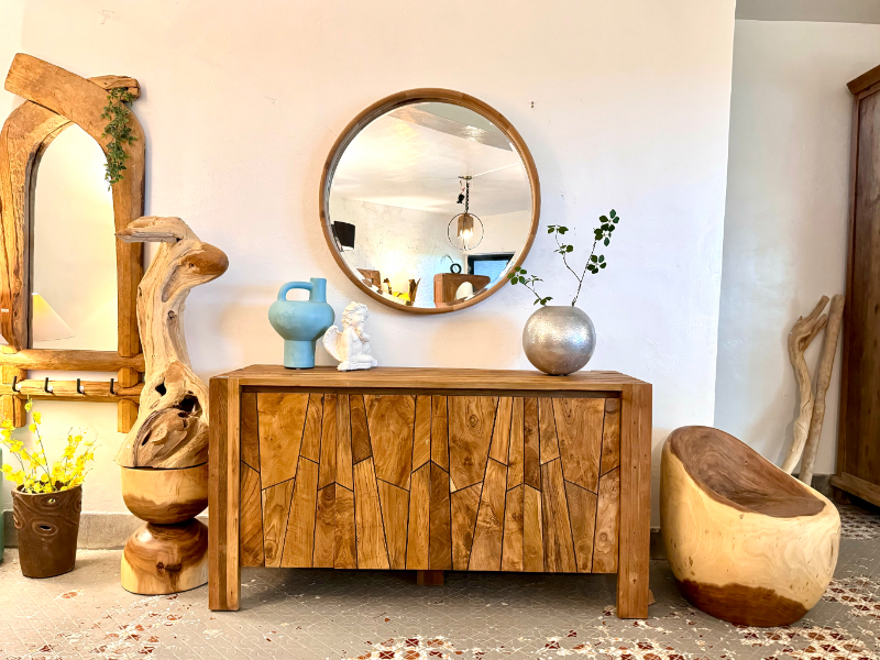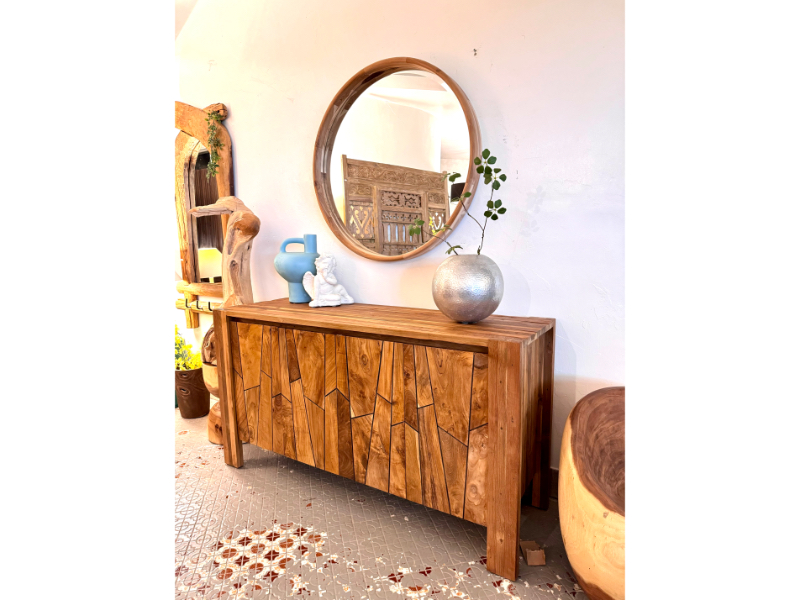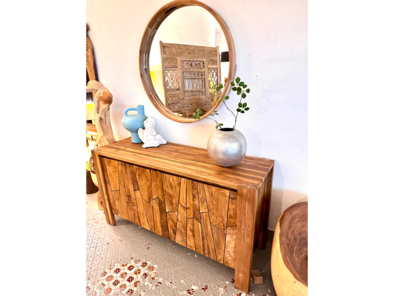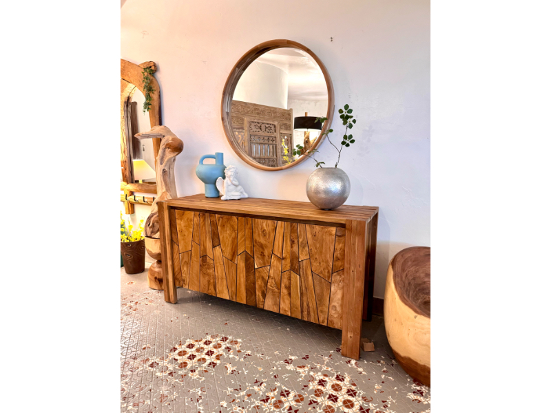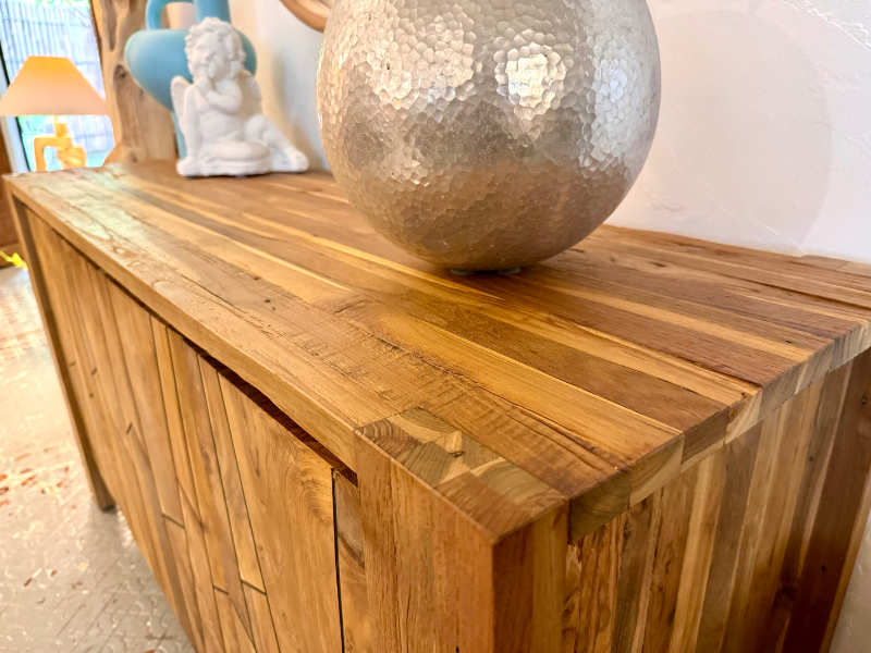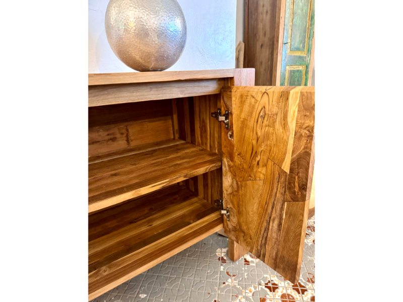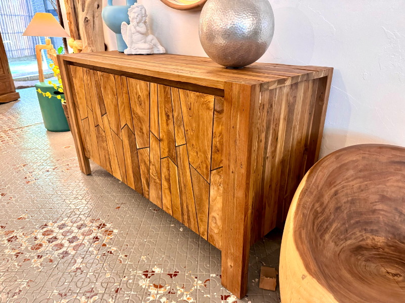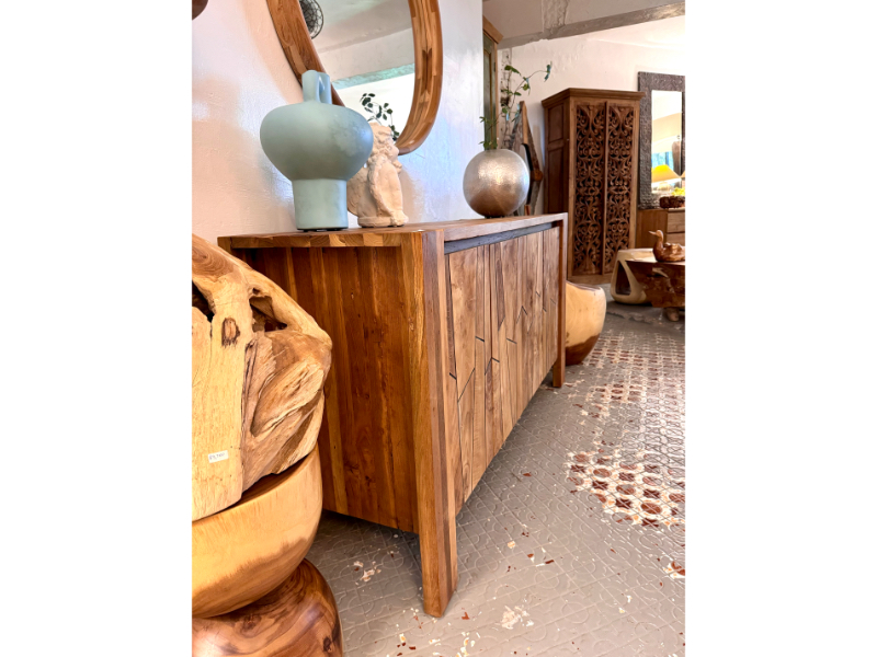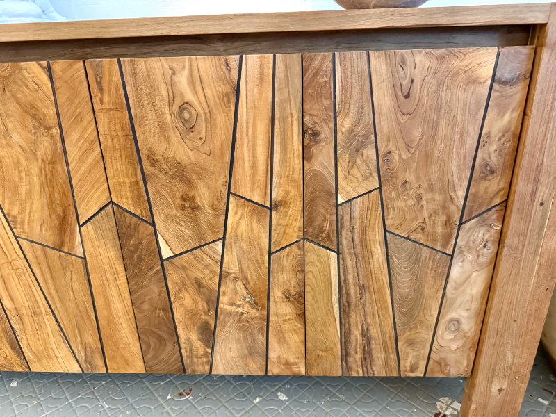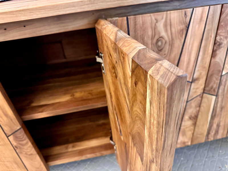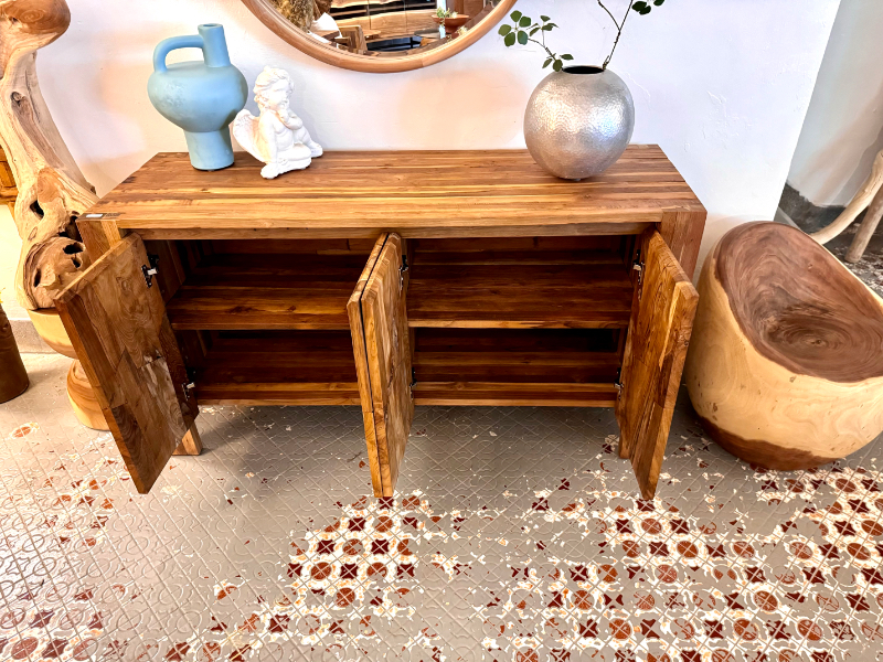 柚木櫥櫃 收納櫃 新設計4門 柚木門精緻修邊-FLUTTED Teak Buffet 4 Door