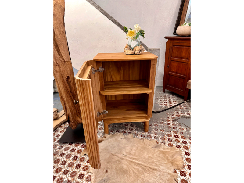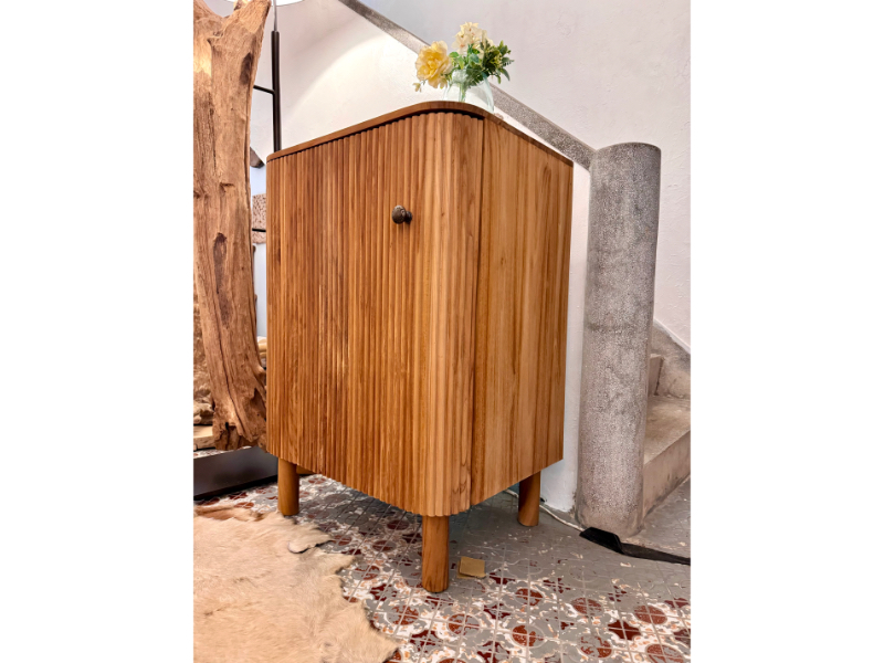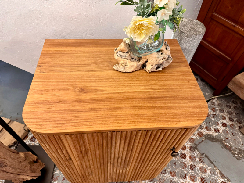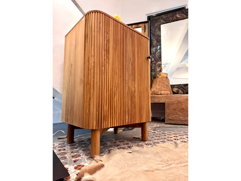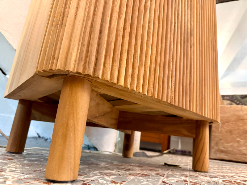 Made from teak wood.
