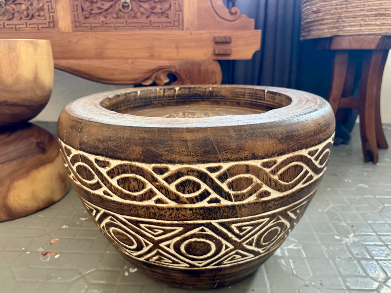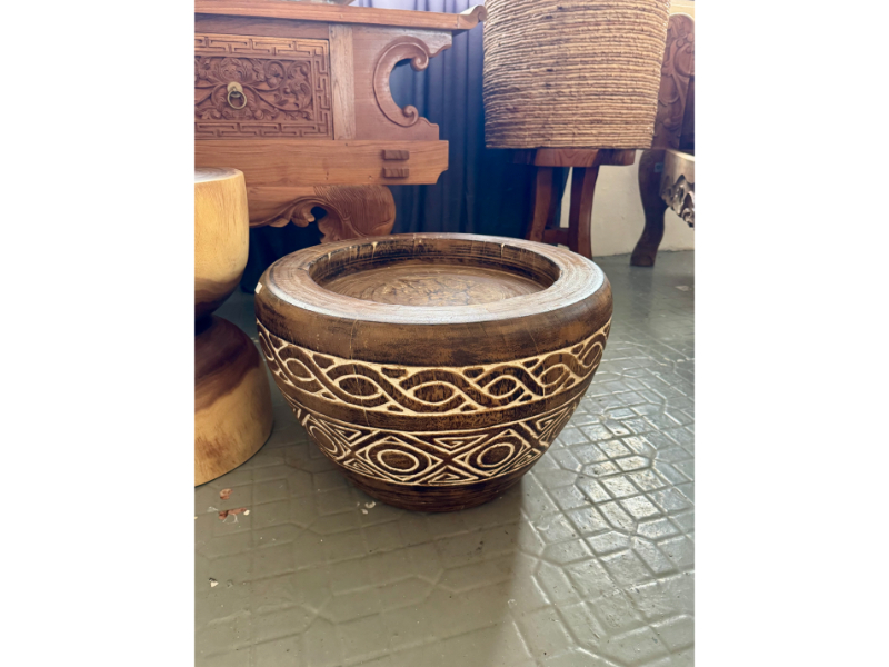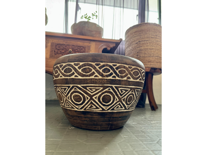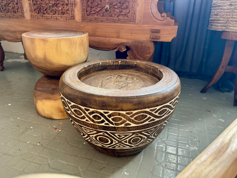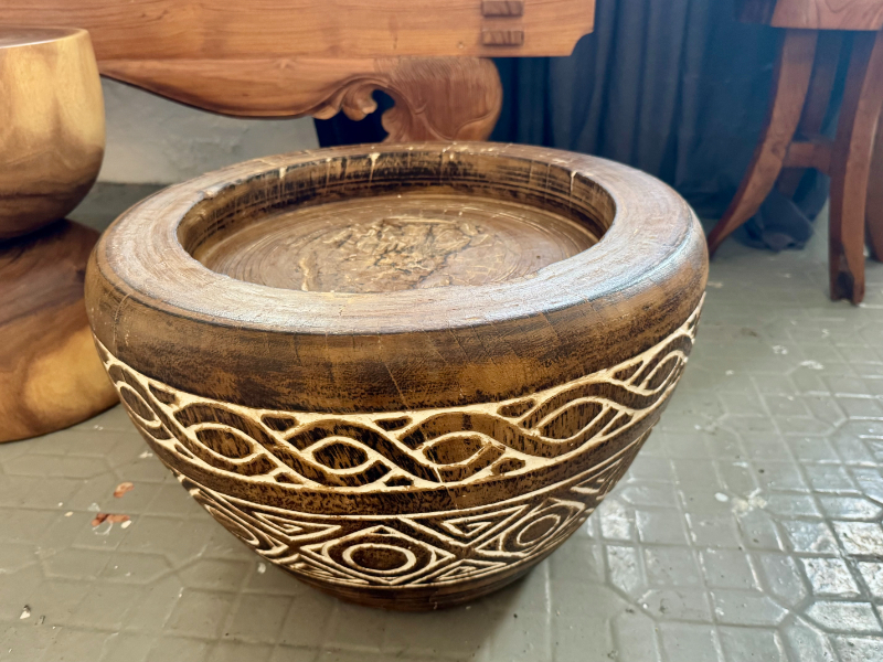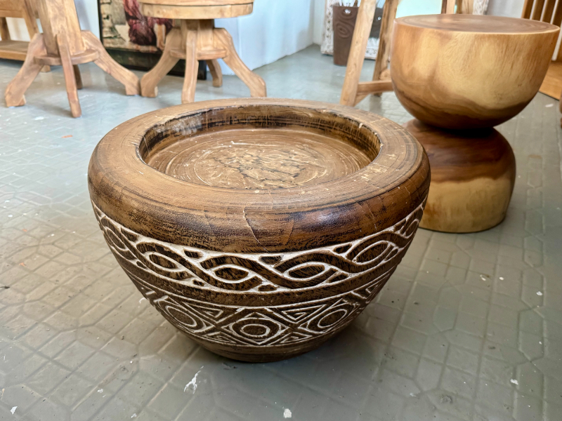 原木低矮小茶几 手工雕刻邊桌-Suar Side Table