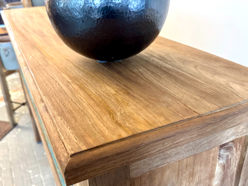 Made from teak wood.
