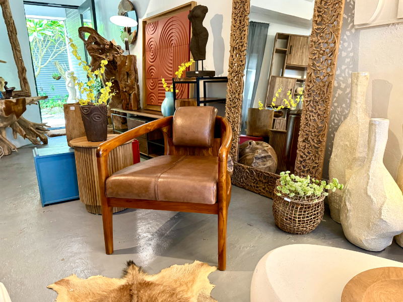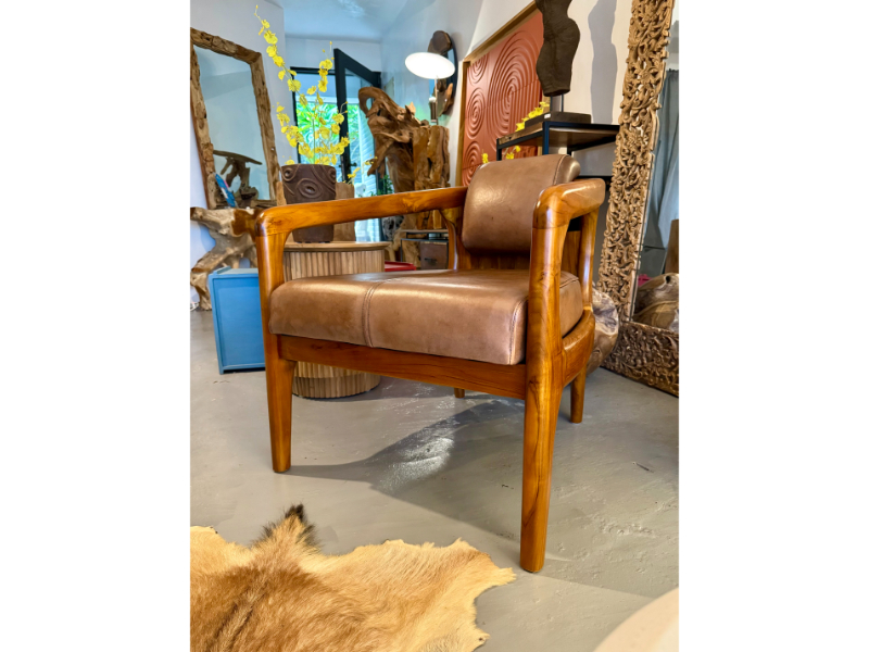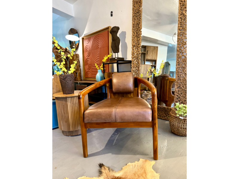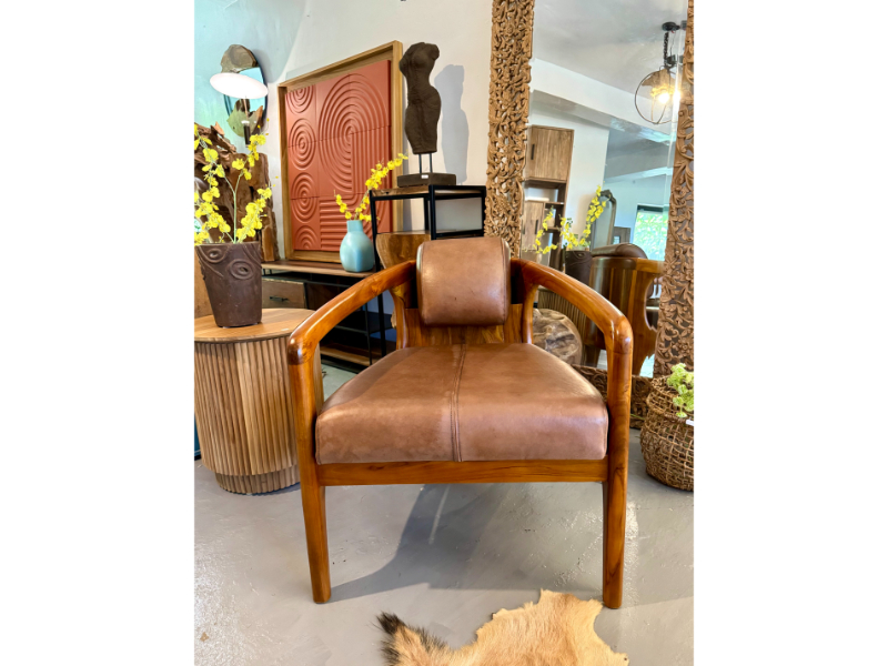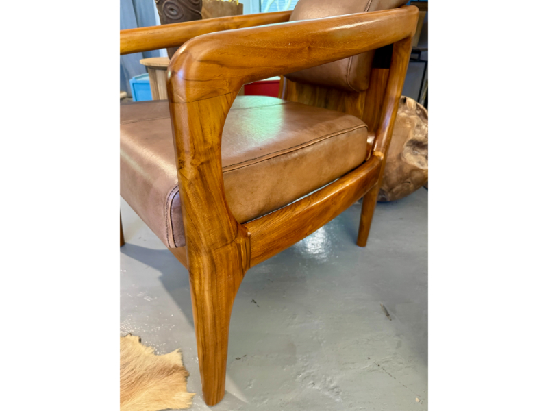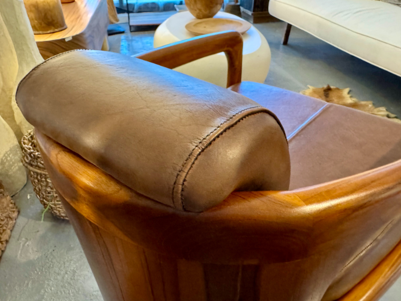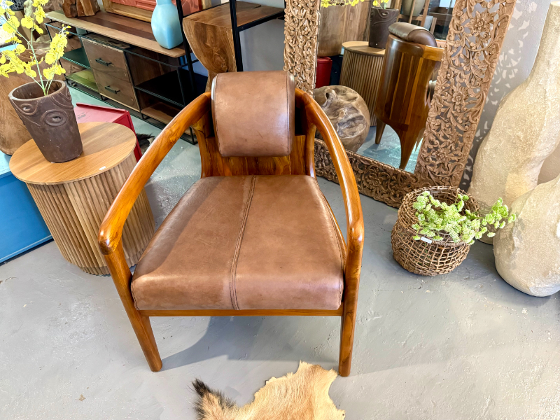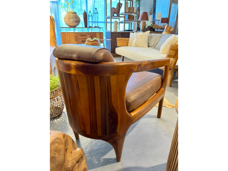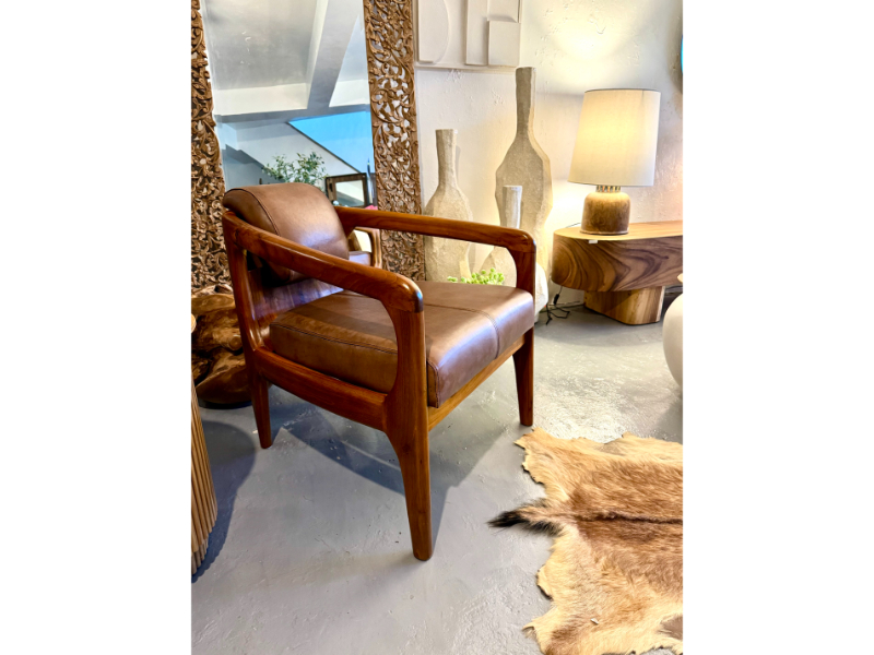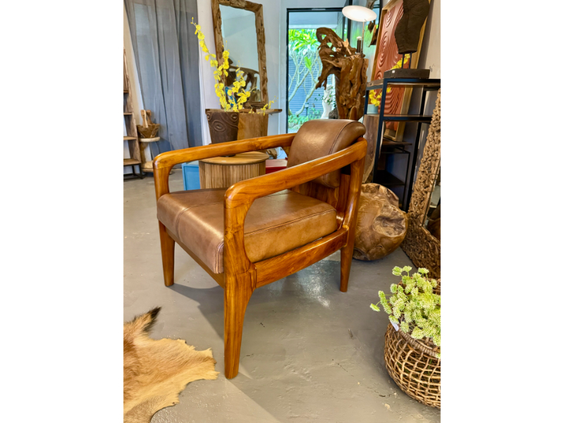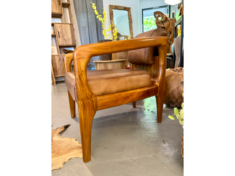#柚木單椅 #生活美學 #家具設計 #手工製作 #牛皮椅 #原木家具