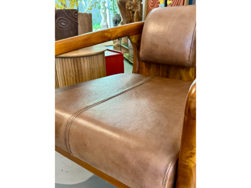 柚木單人牛皮沙發椅- Cigar Lounge Chair