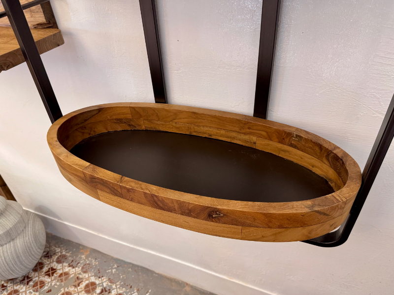 - 獨特圓弧托盤: 厚實的柚木邊緣,不僅具備包覆美感,更讓展示品穩固不滑落。