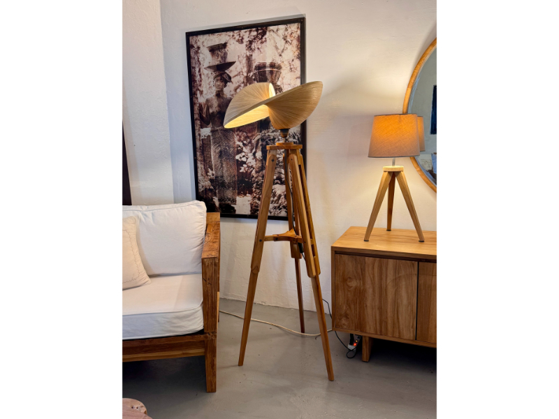 編織自然之光:柚木三腳架立燈-Teak Floor Lamp Sisi