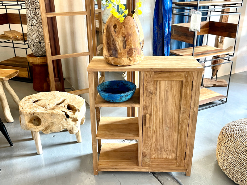 $ 33,000 元柚木單門雙層收納櫃 柚木直條半圓造型門 簡單好開啟 全實柚木- Deco Entry CabinetP101610388975