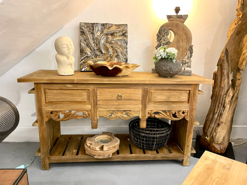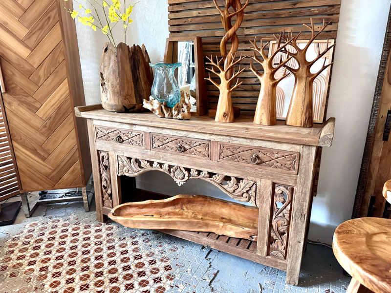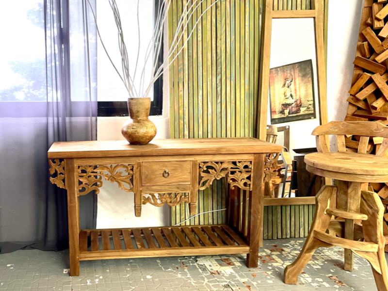 $ 13,000 元柚木手工雕刻玄關桌 洗手台收納櫃 展示架 -Teak Console TableP101646433409