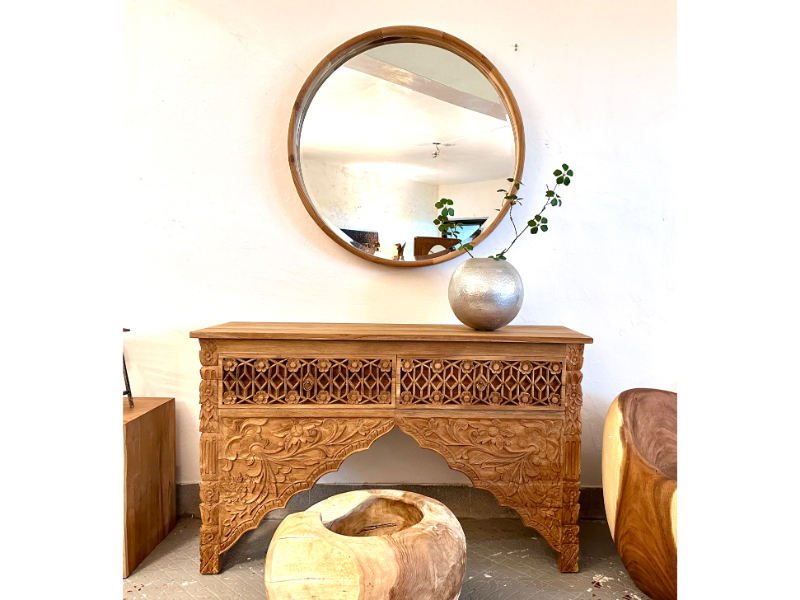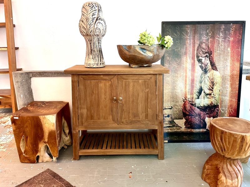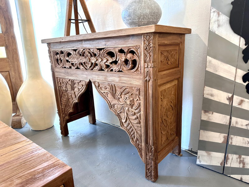 $ 11,500 元柚木收納櫃 一門(向下拉) 手工雕刻 碗盤餐具櫃 -Console 1 Door w/CarvingP101655583755