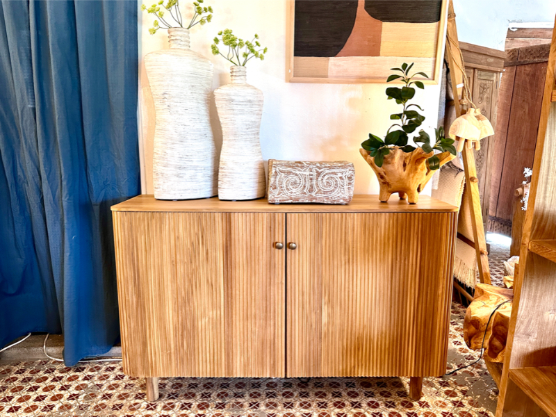 柚木櫥櫃 收納櫃 新設計4門 柚木門精緻修邊-FLUTTED Teak Buffet 4 DoorP101587837602