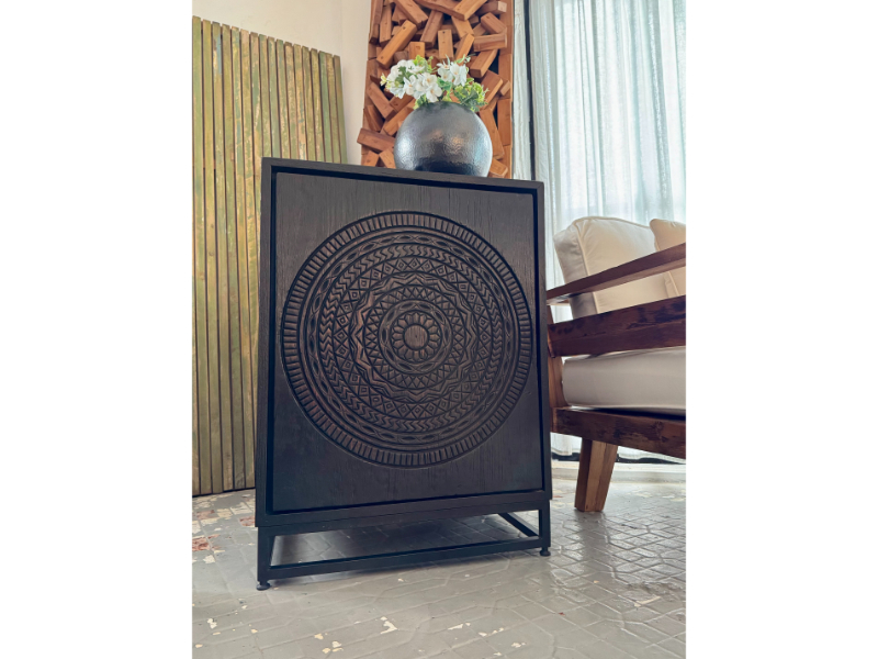 $ 12,500 元柚木單門雙層收納櫃 黑色手工雕刻門 按壓開啟 全實柚木-Cola Entry CabinetP101639927956